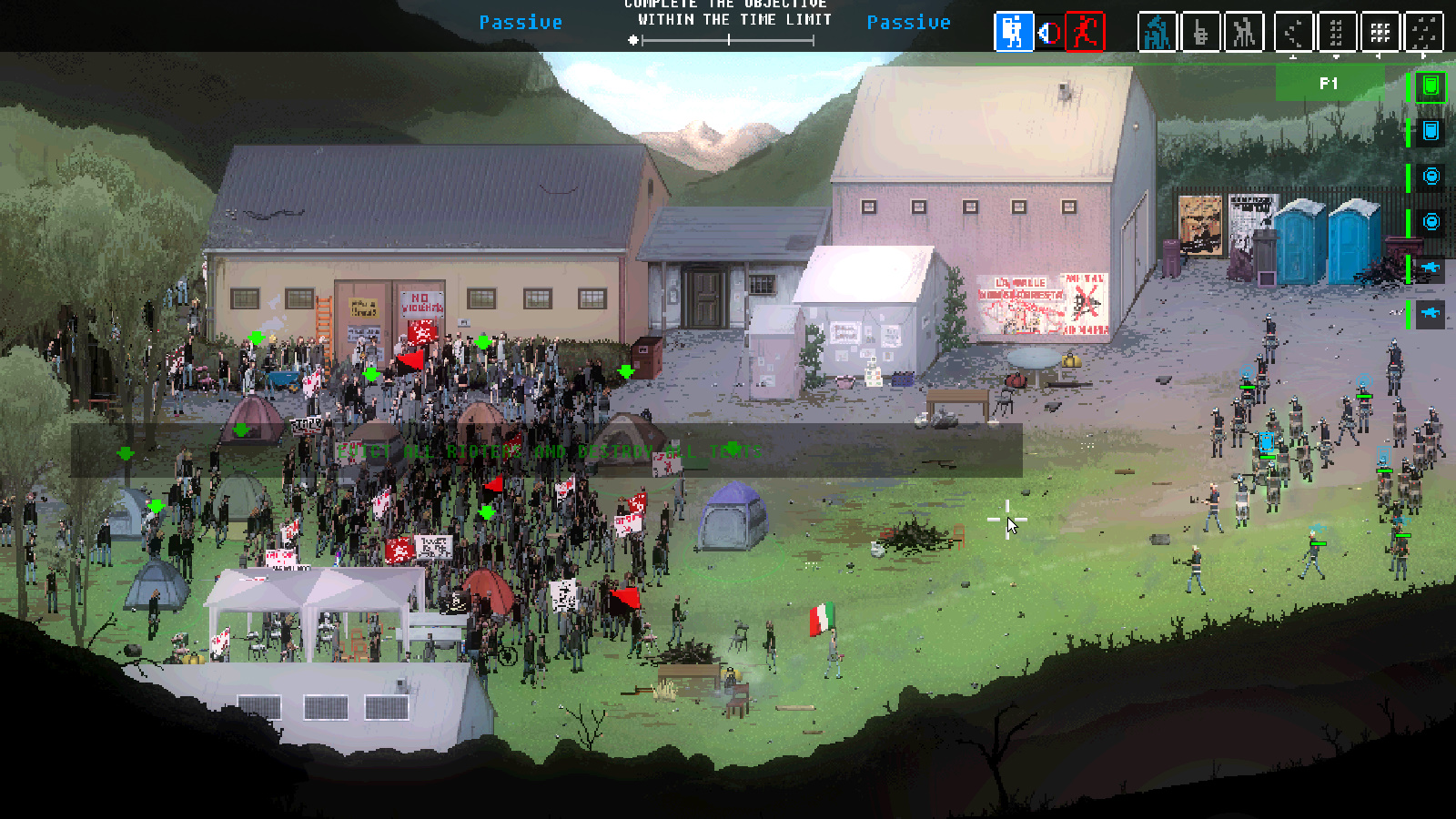 진압대의 목표는 시위대의 저지 또는 특정 오브젝트 파괴 등이 있으며