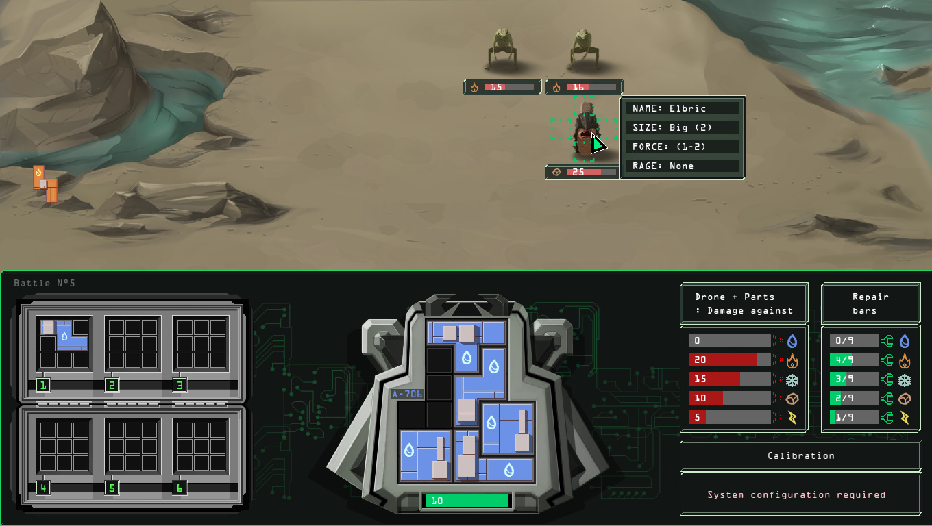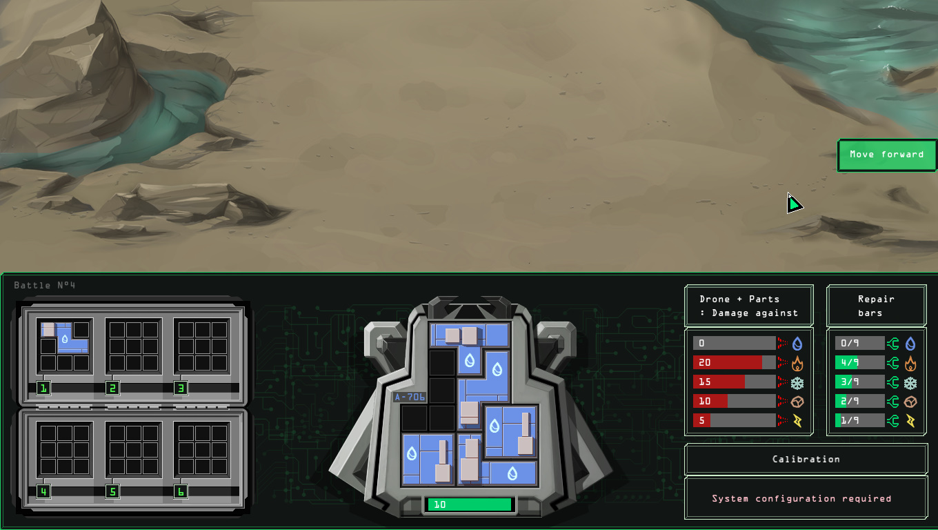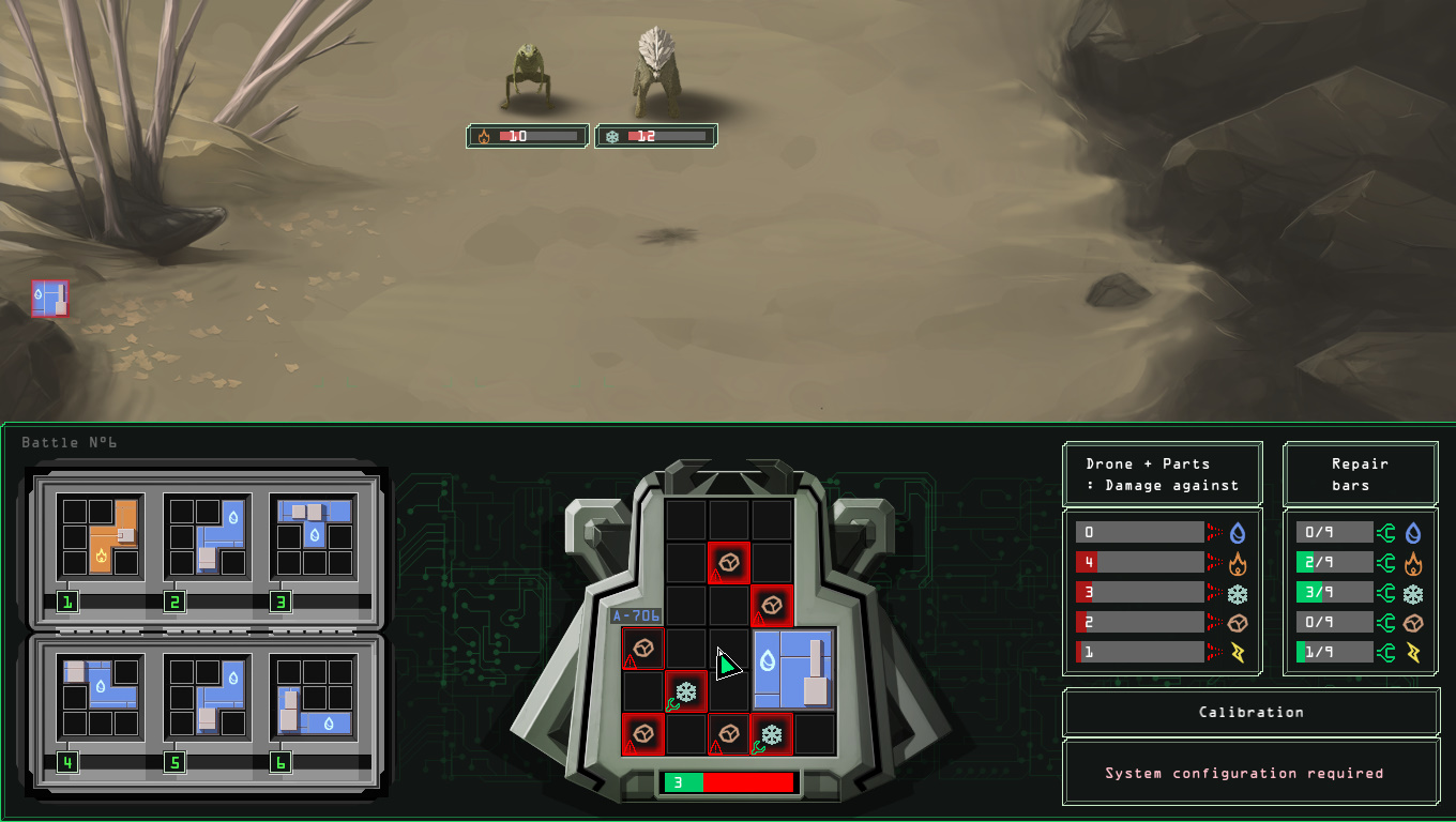 몬스터의 공격을 받으면 우주선에 배치 불가 구역이 생기며