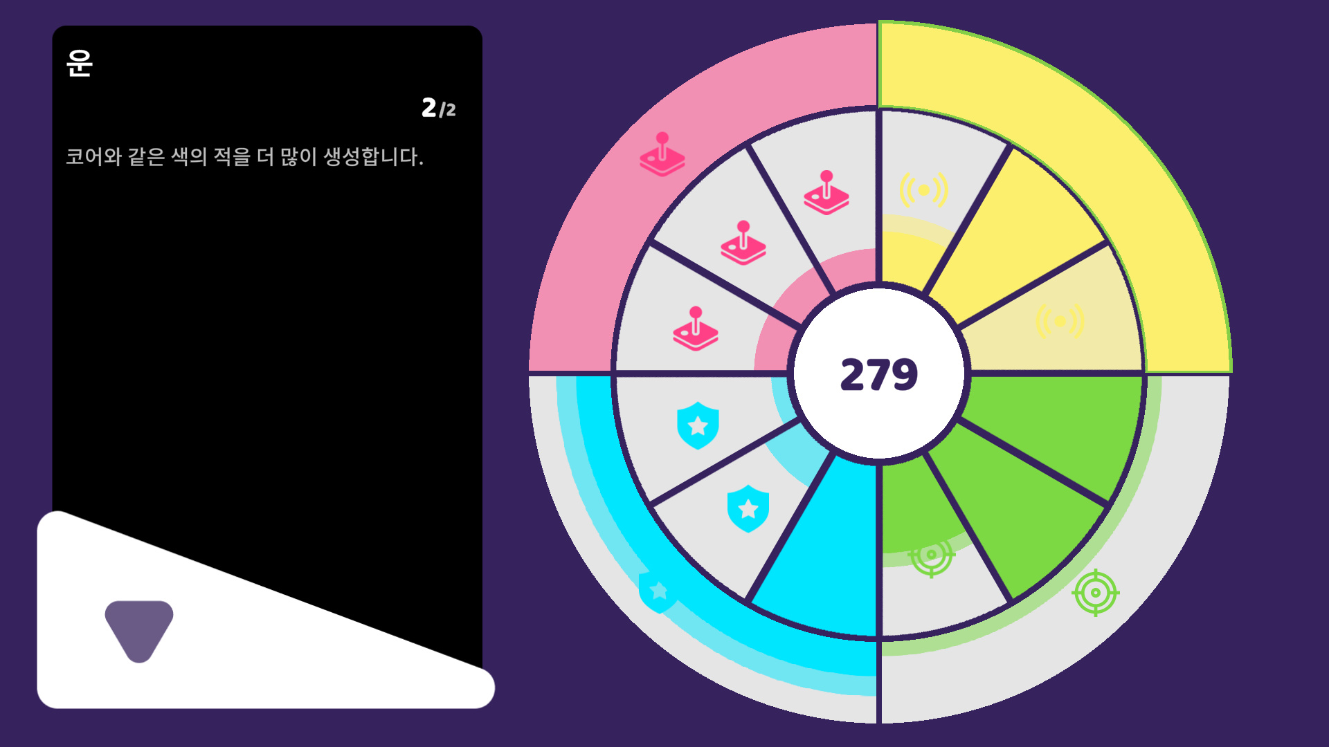 같은 색의 공을 흡수하면 외부 장벽이 생성되는대