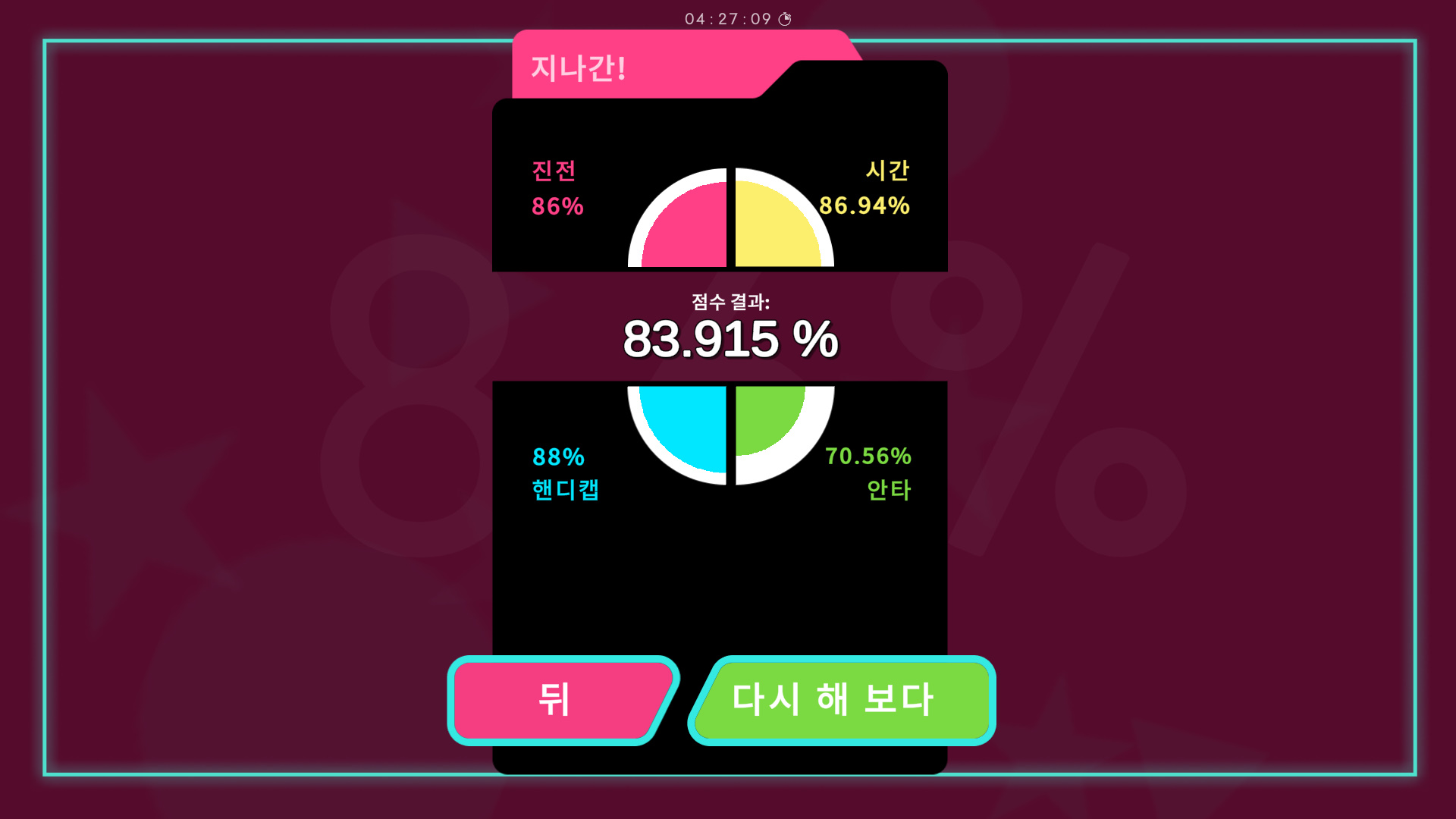 100% 이상을 플레이할 수 있는 모드입니다.